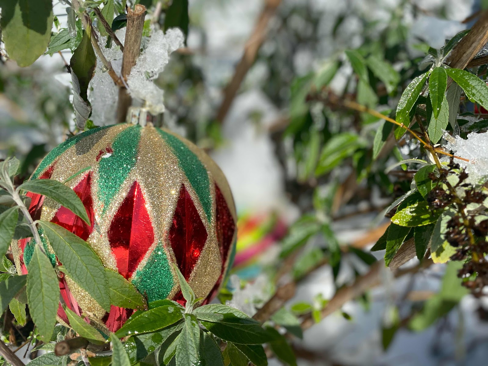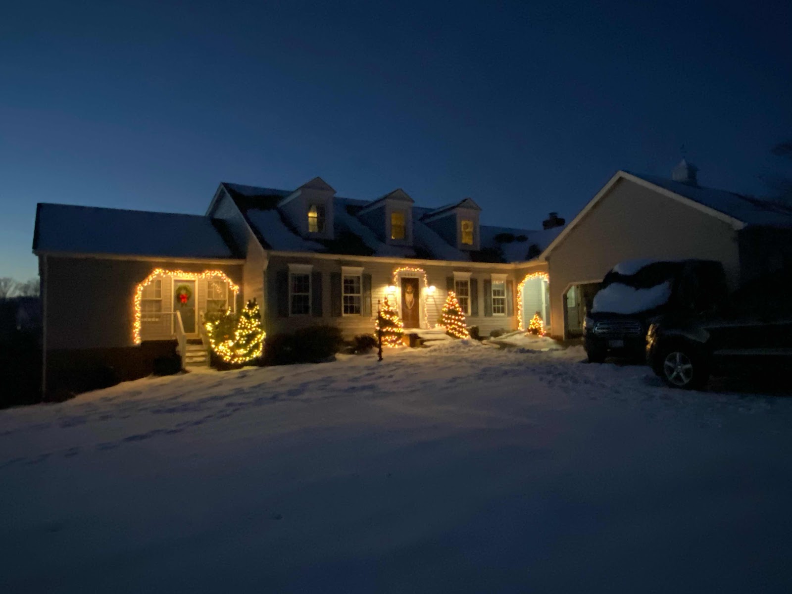 Our Christmas lights with the snow!